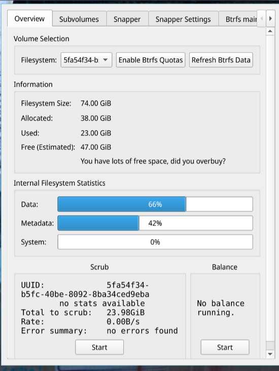 This came up earlier in the thread (back in March: Btrfs Assistant 1.0 is nearly here - #28 by BluishHumility). I realize the application has gone through a number of significant changes since then so I am not sure if this discovery is still relevant or not, but if it is valuable I did just set it up again and it is still working the same.