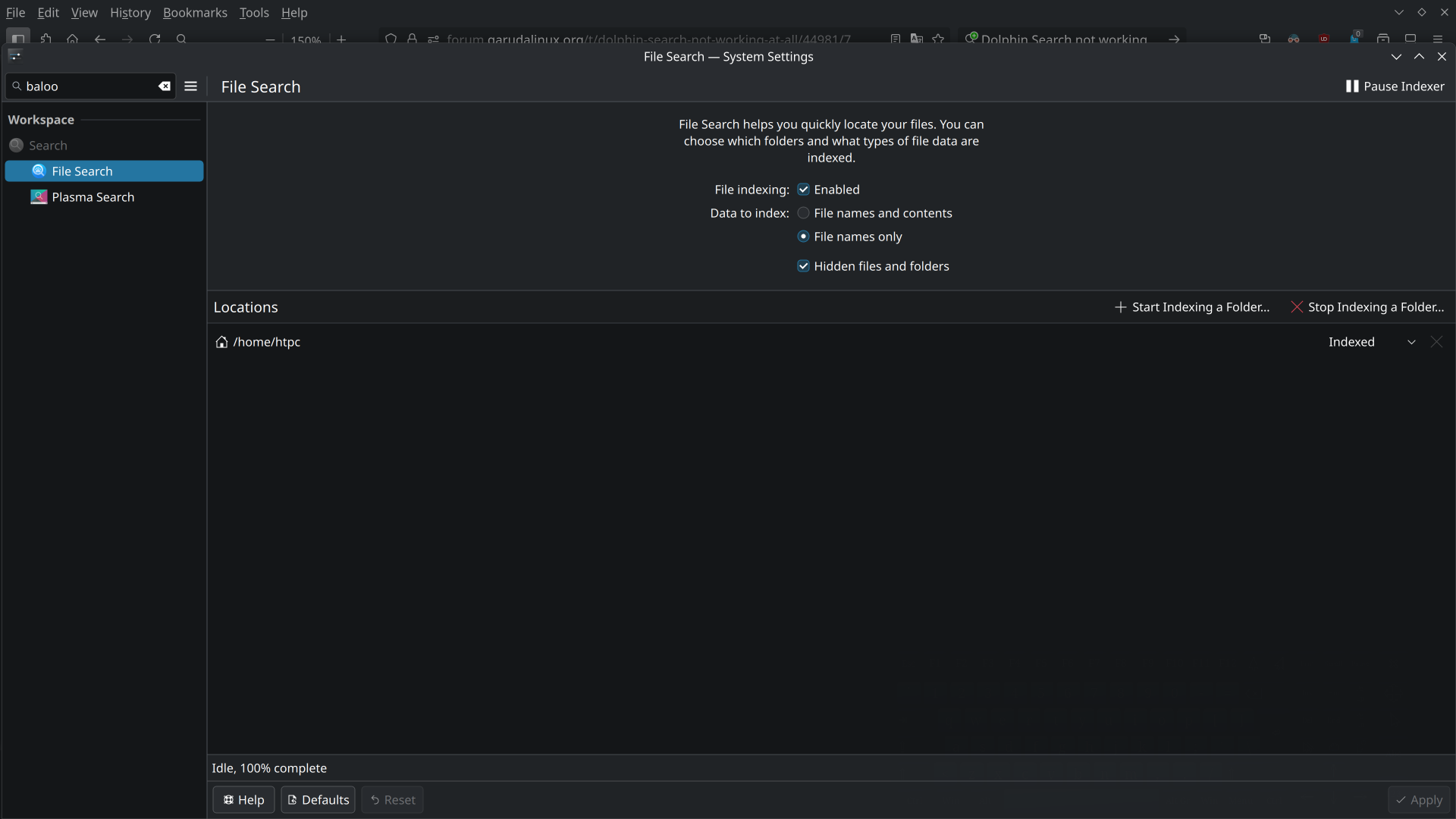 Baloo File Indexer is running