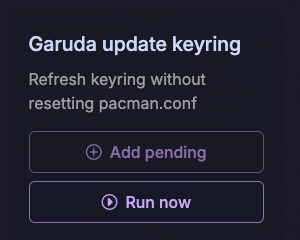 I was investigating this again right now. If you click this, then some resetting is definitely expected. Garuda-update remote scripts are basically meant to be a way out when your system is ■■■■ed in one way or another (can even fix broken Pacman), which is also indicated by the tab being named “rescue tools”.
