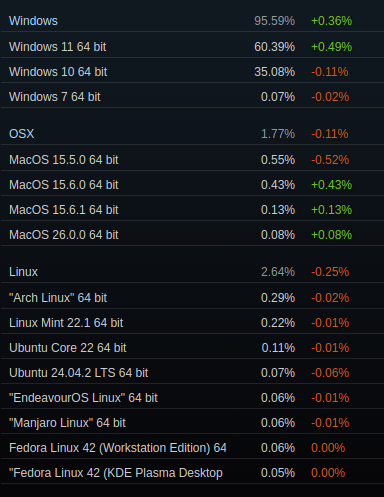 I use Steam on linux like.. 90% of the time but sods law last couple of times i’ve had the survey while i’ve been on Windows ![]()