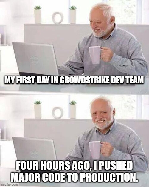 I’d just like to thank the good people at Microsoft and Crowdstrike for the opportunity to get paid full rate (plus holiday and pension accrual) to really smash out the housework. I thought I didn’t like doing chores, turns out I just didn’t like not doing them on paid time!