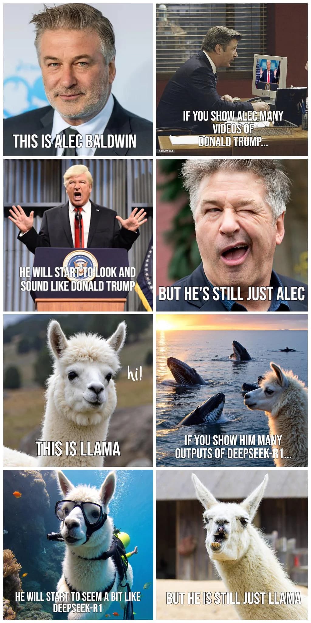 I was baffled at the number of people who seem to think theyāre using āR1ā when theyāre actually running a Qwen or Llama finetune, until I saw a screenshot of the Ollama interface earlier. Ollama is misleadingly pretending in their UI and command line that āR1ā is a series of differently-sized models and that distillations are just smaller sizes of āR1ā. Rather than what they actually are which is some quasi-related experimental finetunes of other models that Deepseek happened to release at the same time.