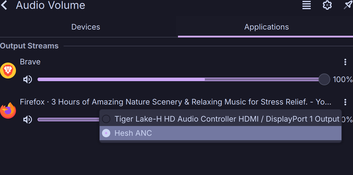 In the “Audio Volume” menu in the Applications tab sometimes I do see Firefox and the sound bar is moving. But there’s no audio at all coming out.