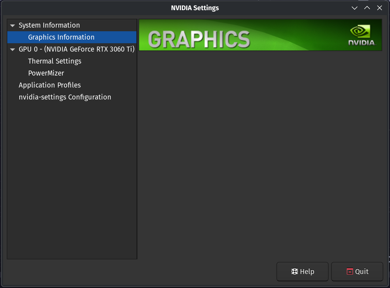 In the Nvidia X Server settings, the Graphics Information page is completely blank.