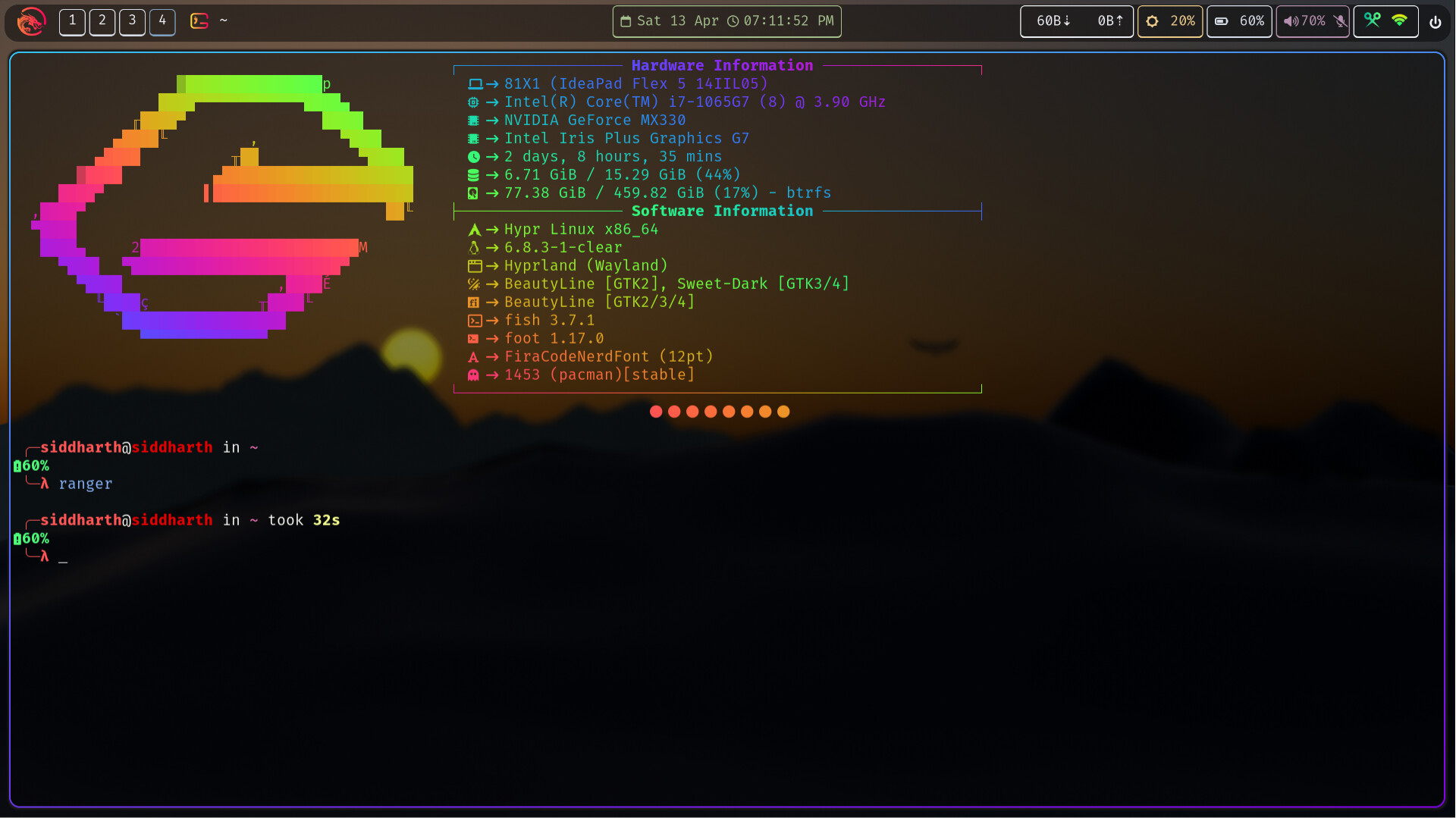 I know Hyprland is efficient but you should give some rest to battery of your laptop too I guess ![]()
