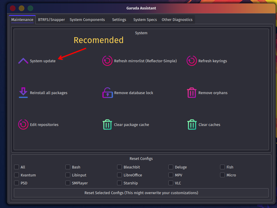 Here goes. A couple of weeks ago I started having this problem where I can no longer update through the pamac gui, or pamac at all for that matter. Now, I know the “proper” way is to use “garuda-update”, but I just prefer the GUI and there’s some packages that just won’t update through garuda-update, such as Opera. Problem appeared I think after an update to pamac, but I’m not sure. Whenever I try to update it will get stuck at “refreshing chaotic-aur” during the databases refresh. At first I thought it was a problem with chaotic-aur, but it doesn’t seem to be the case. Garuda-update works like normal. Thing is, if I try to use pamac it will just stop at refreshing chaotic aur indefinitely and if I cancel and try again it will tell me that it’s waiting for another package manager to quit and it will just stay there. Also, if I use pamac and cancel after it fails, then nothing works, even garuda-update will say it failed to lock databases. As troubleshooting I tried removing the database lock file, both through Garuda Settings Manager and manually, but it doesn’t work. Weirdly, just installing standalone packages through pamac works, it’s the update function that is busted.