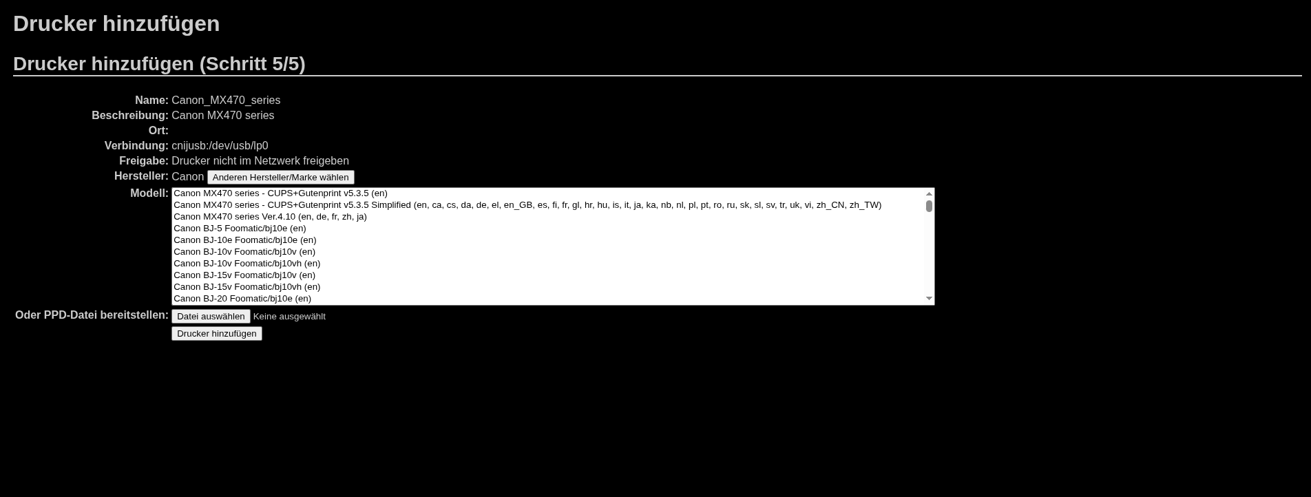 I try top get my Printer Canon Pixma MX475 to work under Linux Garuda,