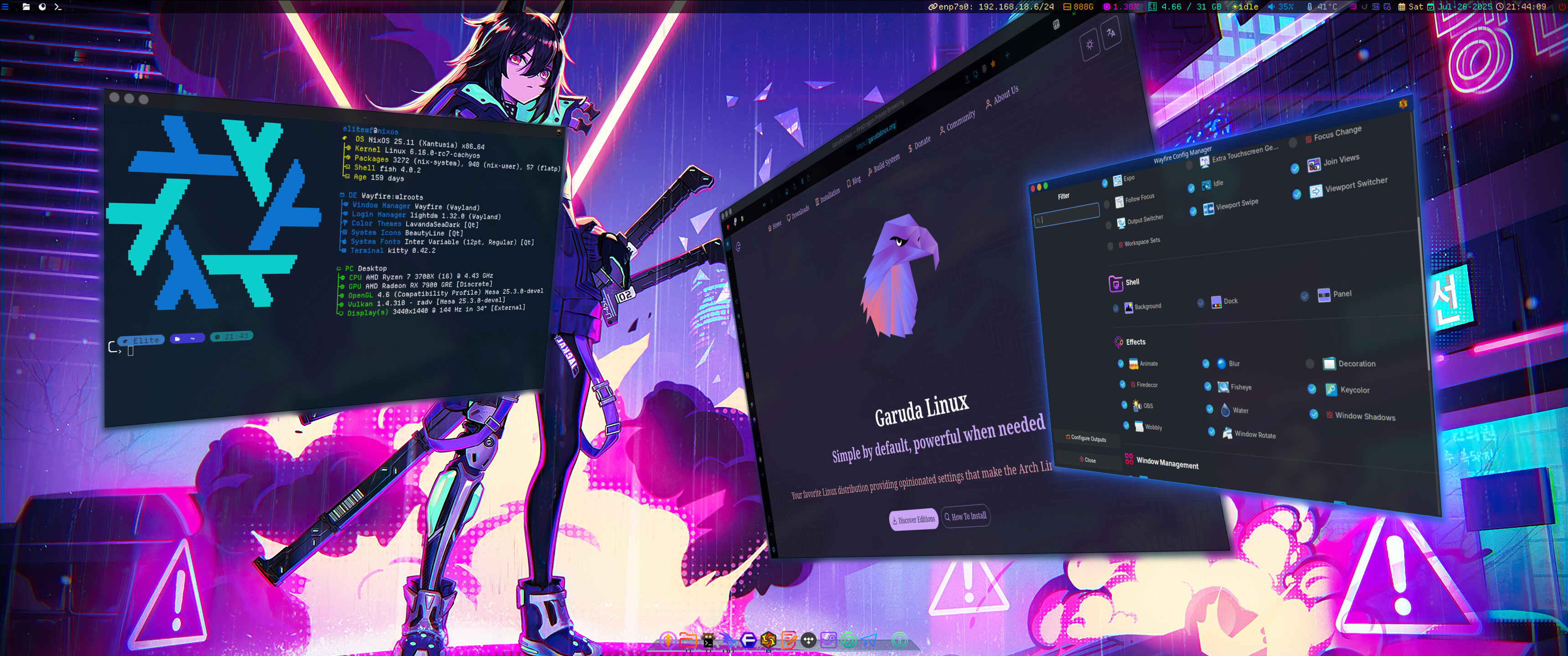 Re-envisioned garuda wayfire! Well I don’t have everything done. But its getting there. Like getting brightness control working and a bluetooth tray icon or fastfetch icon, but it’s qt wayfire. One step at a time