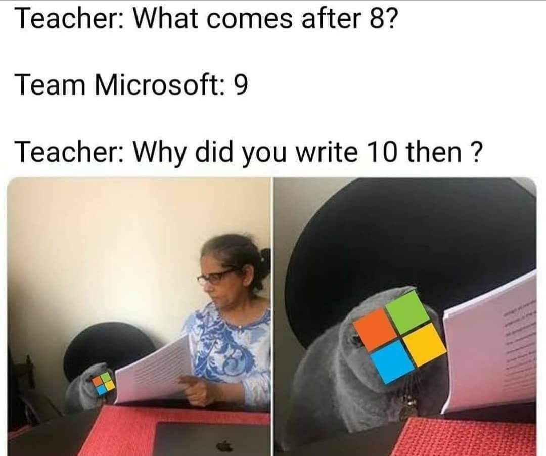 Why did you write 10? Cause 9 isn't far enough away from 8! Maybe they should switch to a monolithic kernel and give up on....