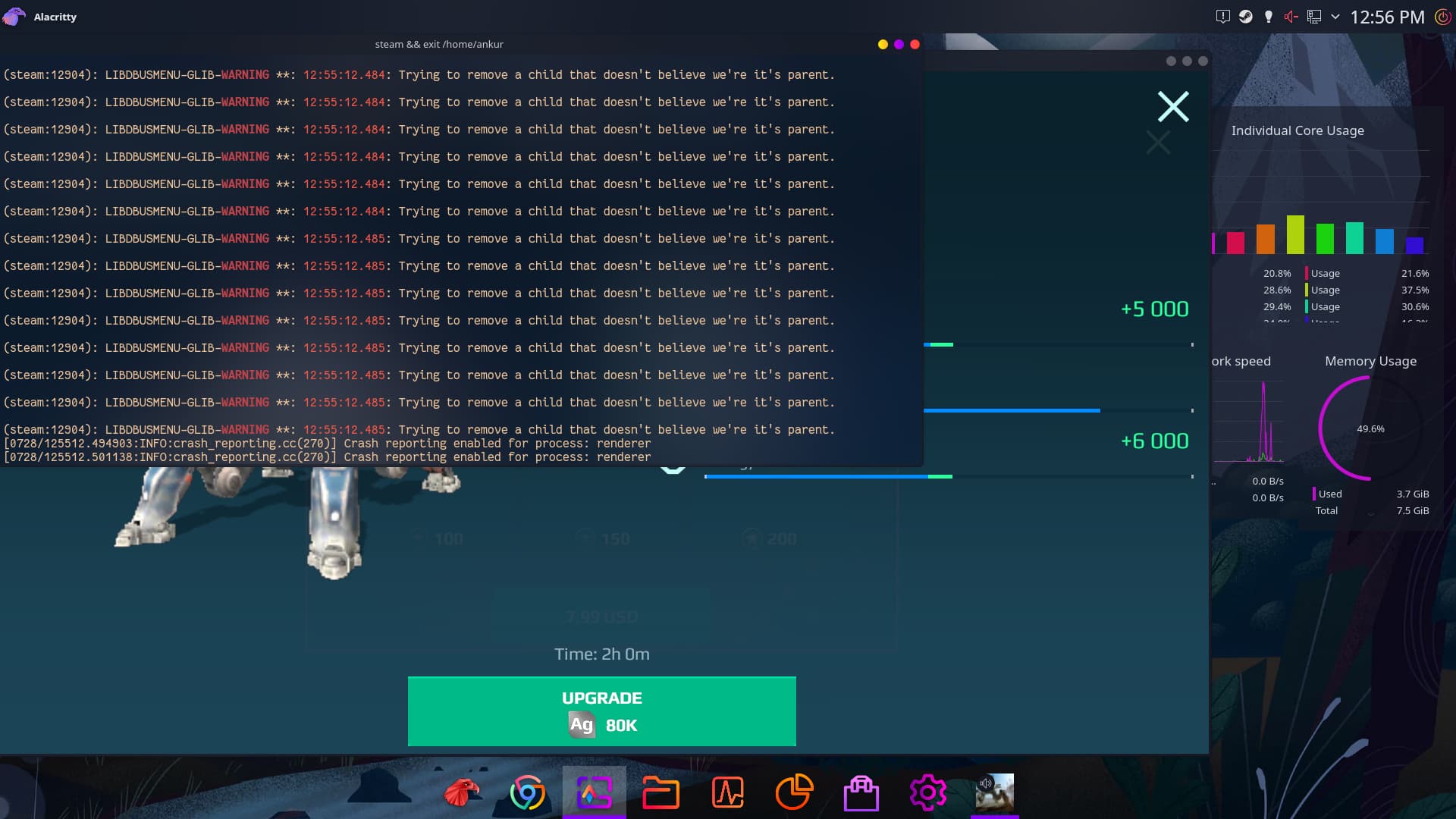 Found a very old one screenshot of garuda linux (dated 28 July 2021), it was of when I just found garuda linux and was enjoying it with some random games and I found error messages in child processes by steam , at that time I laughed at that error message a lot because at that time didn't knew what where child processes actually , and I thought that steam also has sense of humour