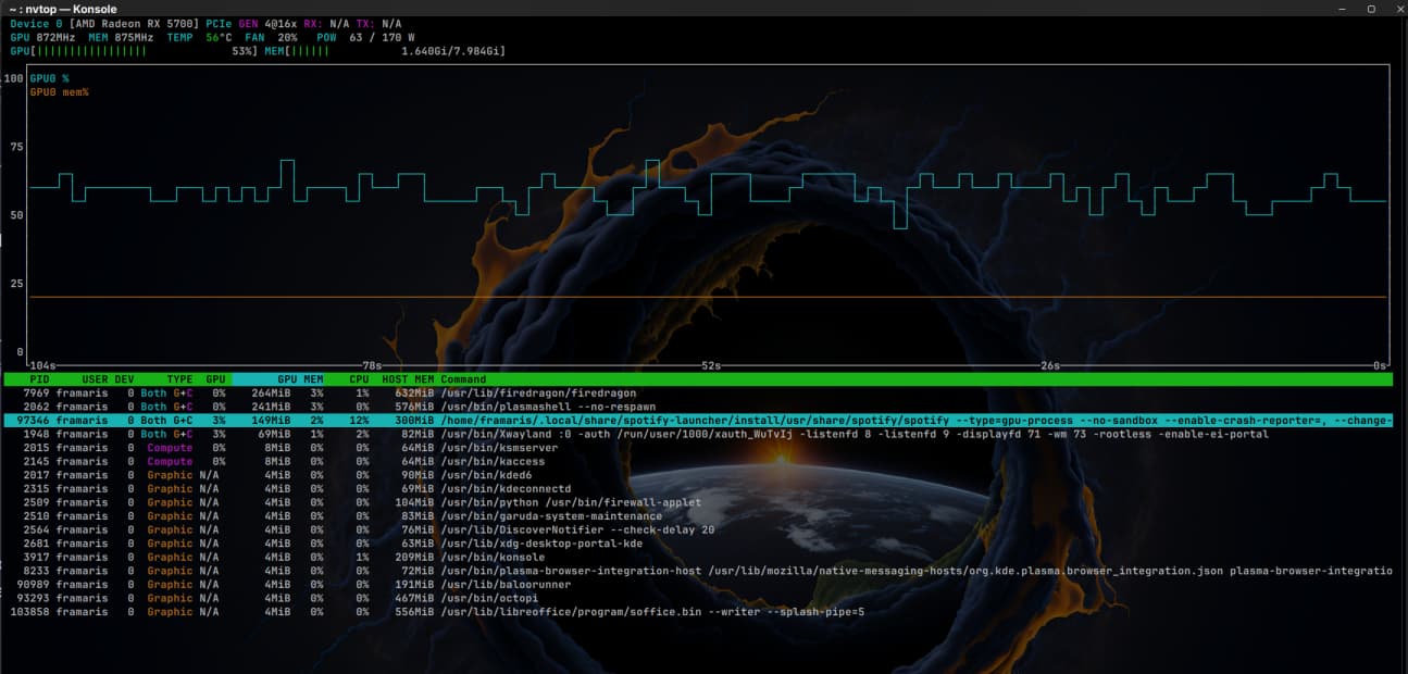 I’ve noticed that Spotify is using around 60% of my GPU just to play music. From what I understand, the hardware acceleration is only for the interface, yet in Windows Spotify only uses about 3% of GPU. On Garuda it idles at about 2% when paused, but jumps to 60% while playing.