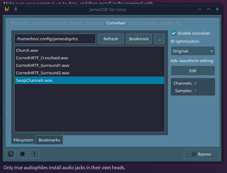 EDIT: You’ll most likely want to use JamesDSP as @Bro suggested below as it is easier. If for whatever reason you need to try something else, you can try what I state below.