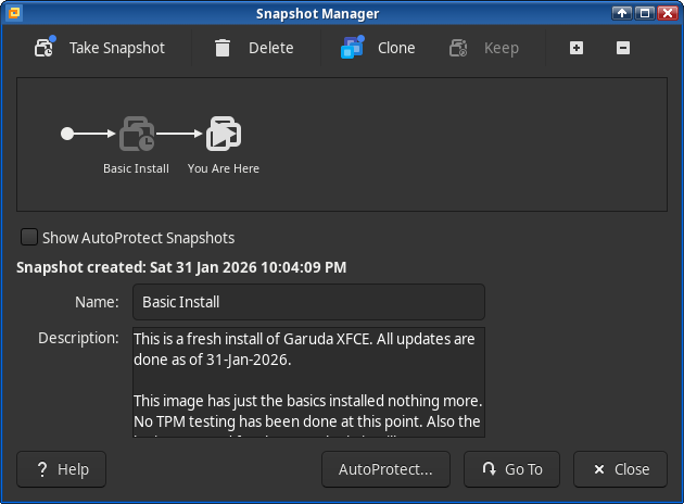 Relevant software: snapper NetworkManager dracut garuda-hardware-profile-standard garuda-hardware-profile-standard-x11 garuda-hardware-profile-vm